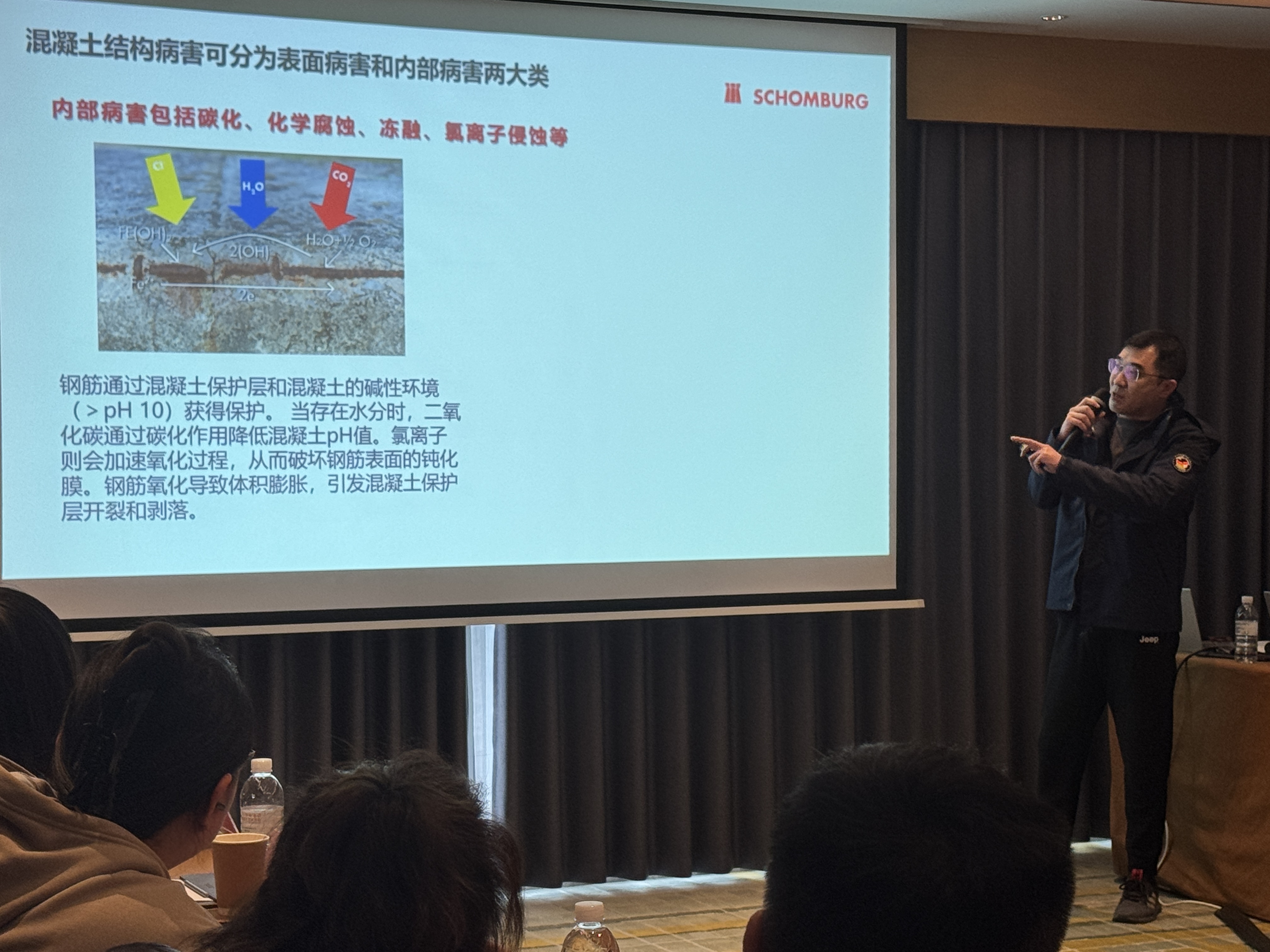 技术负责人高经理聚焦实操干货,拆解混凝土修复与关键部位防水难题:从毛细孔渗水、裂缝等结构病害的根源解析,到渗透结晶防水涂料、修补砂浆等核心产品的精准应用,再到施工缝、后浇带、管道口等易渗漏节点的标准化处理流程,倾囊相授从 “诊断” 到 “修复” 的全链条技术方案,让好产品的优势真正落地见效。