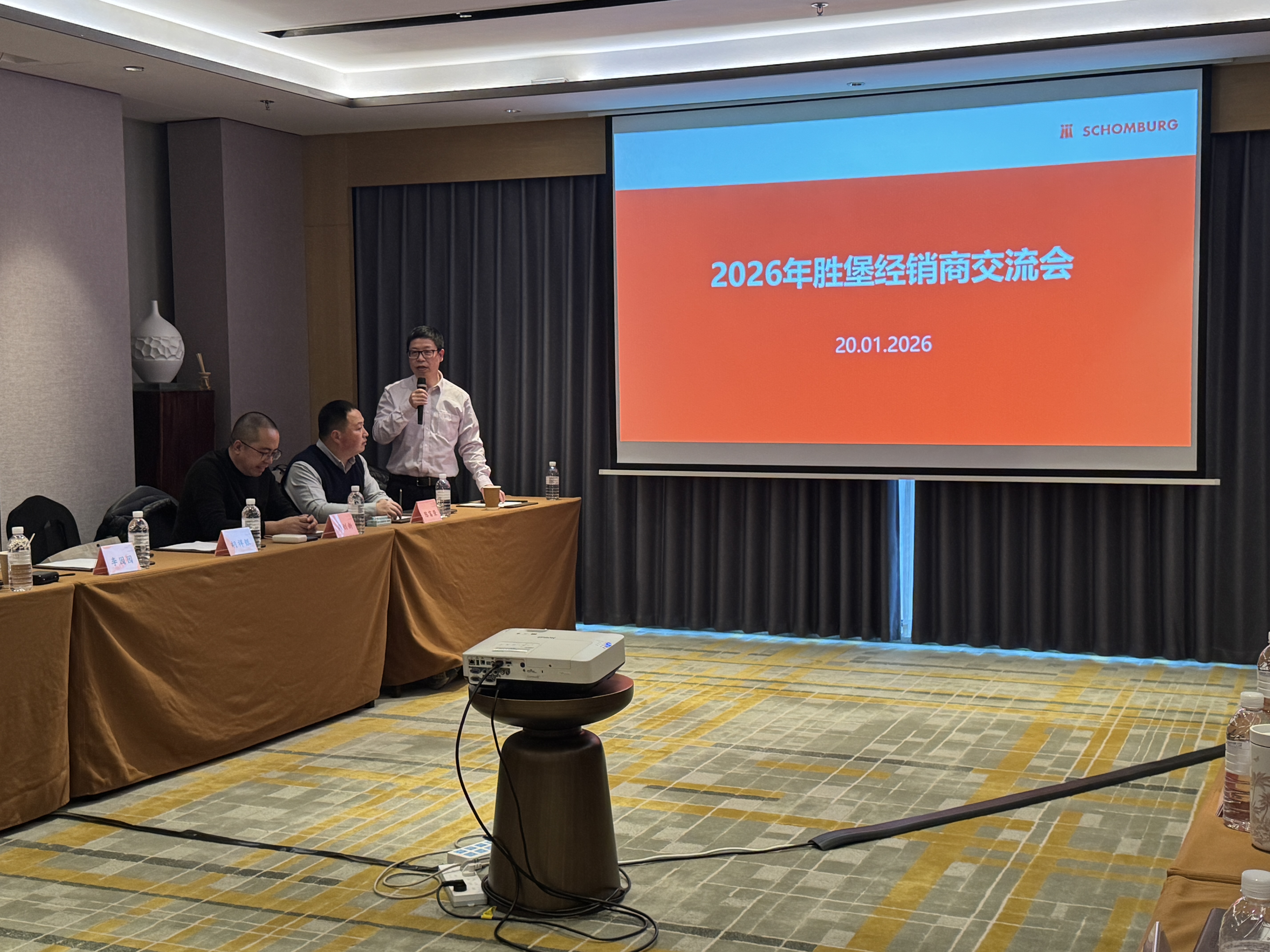 中国区负责人葛总带来 2026 年销售支持政策及发展目标:销售目标与物料、广告、门店装修等全方位市场支持及返利模式;同步发布德国研发新品,新一年将执行的价格调整方案及促销活动,为市场拓展注入强劲动力。此外,2026 年胜堡还将强化区域联动,举办更多针对性沟通交流会,深化与经销商的粘性合作。
